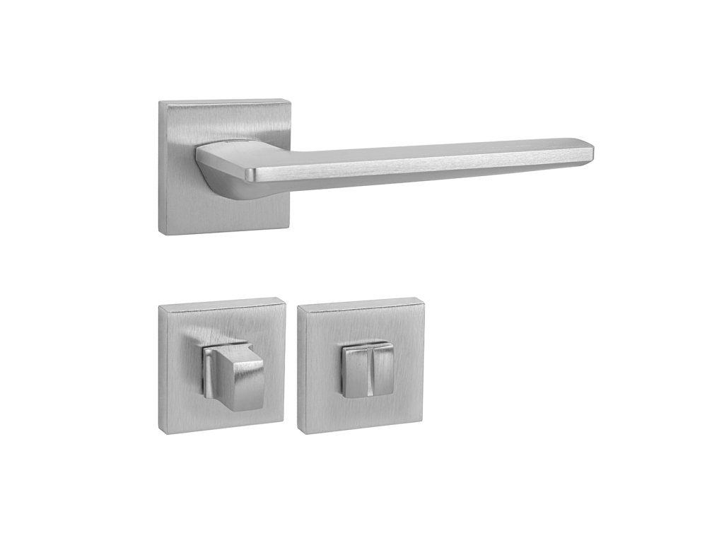 Rozetová kľučka na interiérové dvere s hranatou rozetou je vyrobená z materiálov vysokej kvality – mosadz / zamak a je povrchovo upravená. Rozeta má rozmery 50 mm x 50 mm a hrúbku 10 mm.
