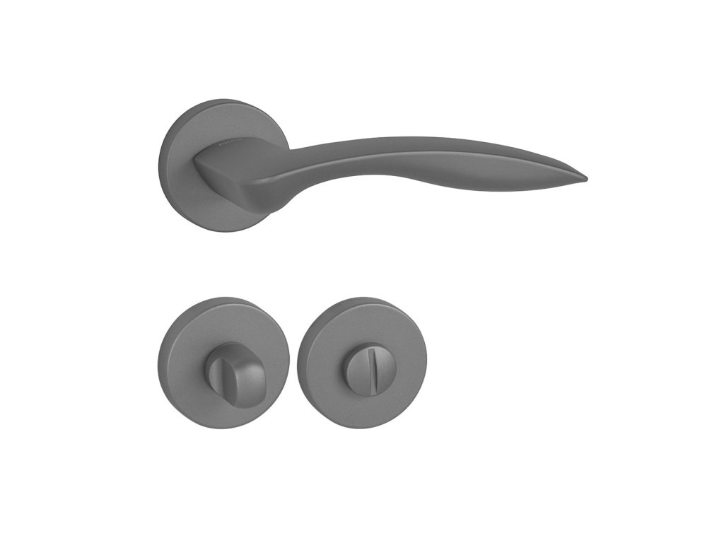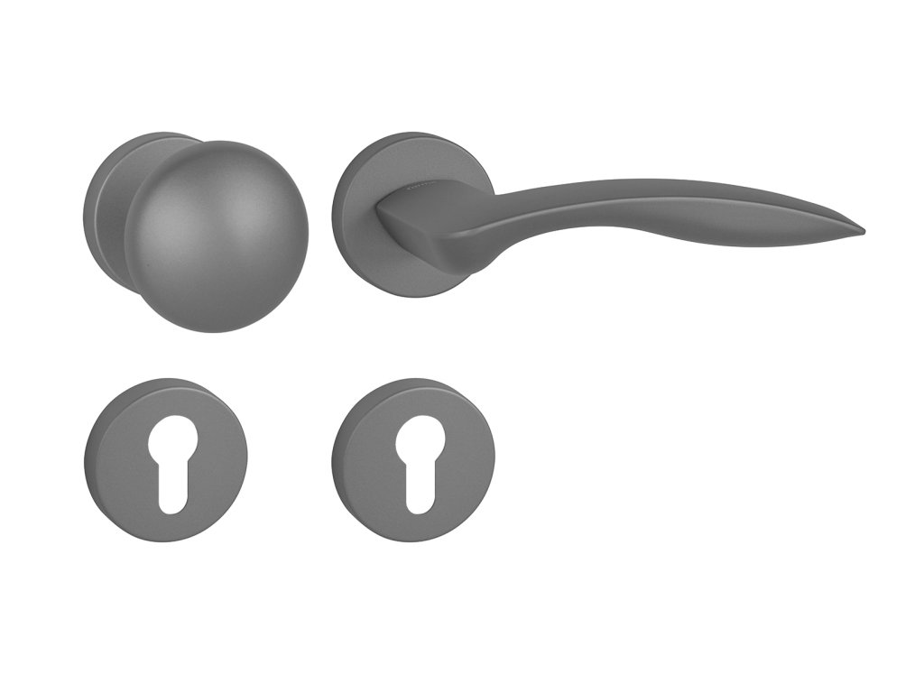 Rozetová kľučka na interiérové dvere s okrúhlou rozetou je vyrobená z materiálov vysokej kvality – zamak a je povrchovo upravená.