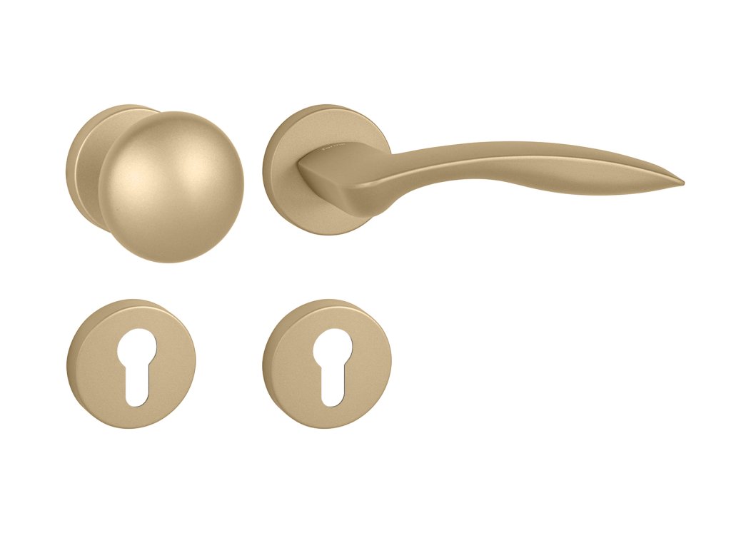 Rozetová kľučka na interiérové dvere s okrúhlou rozetou je vyrobená z materiálov vysokej kvality – zamak a je povrchovo upravená.