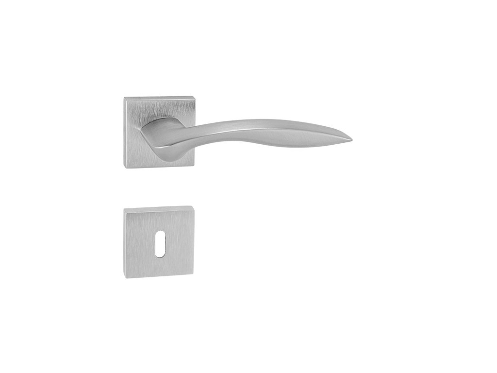 Rozetová kľučka na interiérové dvere s hranatou rozetou je vyrobená z materiálov vysokej kvality – mosadz / zamak a je povrchovo upravená. Rozeta má rozmery 50 mm x 50 mm a hrúbku 10 mm.