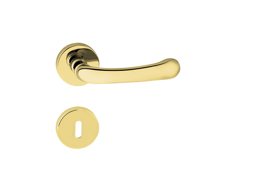 Rozetová kľučka na interiérové dvere s okrúhlou rozetou je vyrobená z materiálov vysokej kvality – mosadz / zamak a je povrchovo upravená. Rozeta má priemer 50 mm a hrúbku 10 mm.