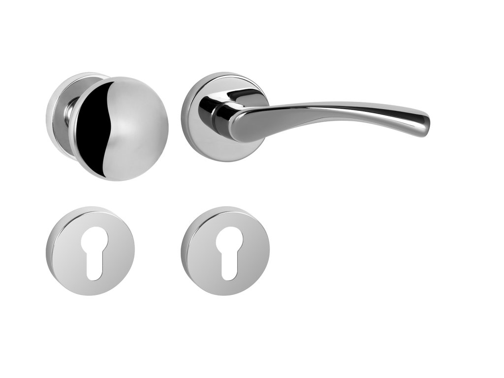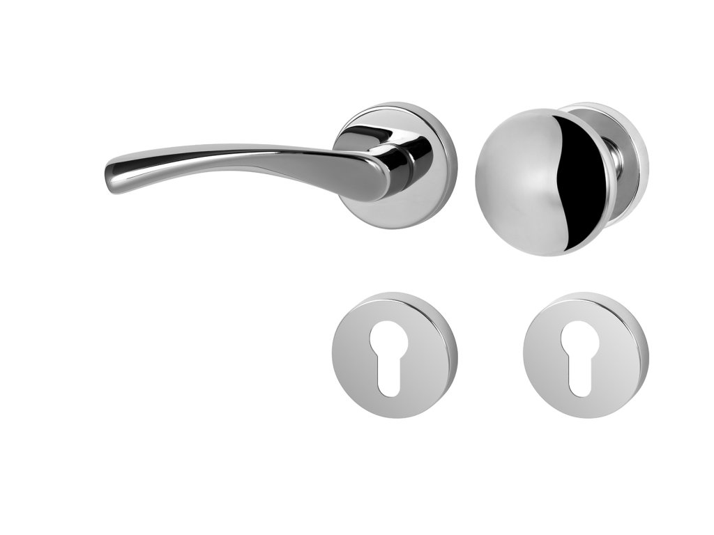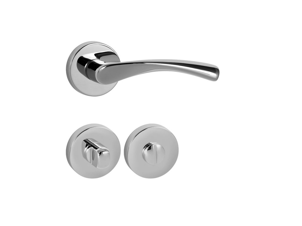 Rozetová kľučka na interiérové dvere s okrúhlou rozetou je vyrobená z materiálov vysokej kvality – mosadz / zamak a je povrchovo upravená. Rozeta má priemer 50 mm a hrúbku 10 mm.