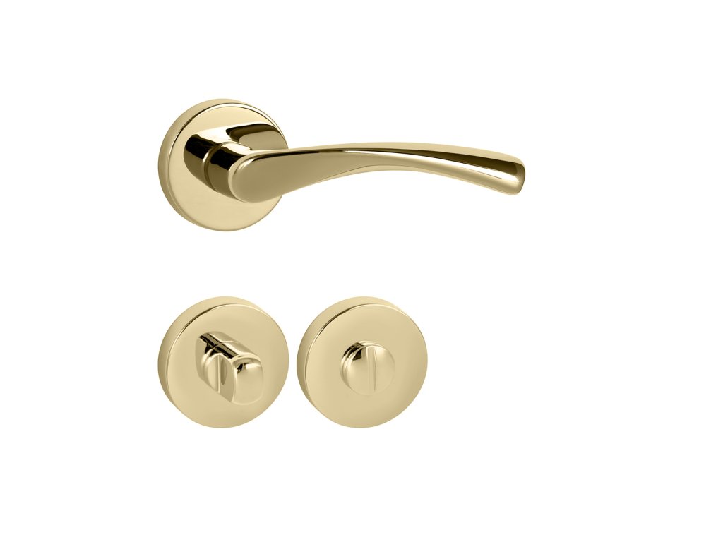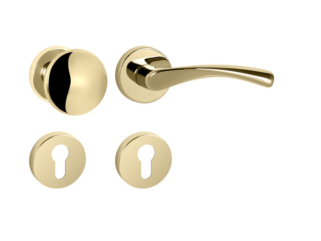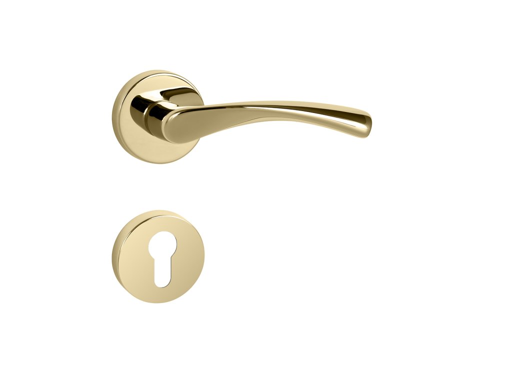 Rozetová kľučka na interiérové dvere s okrúhlou rozetou je vyrobená z materiálov vysokej kvality – mosadz / zamak a je povrchovo upravená. Rozeta má priemer 50 mm a hrúbku 10 mm.