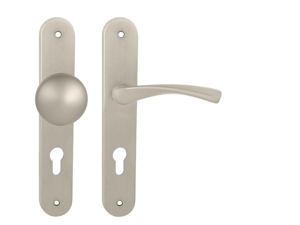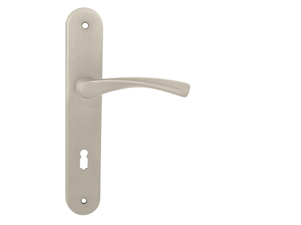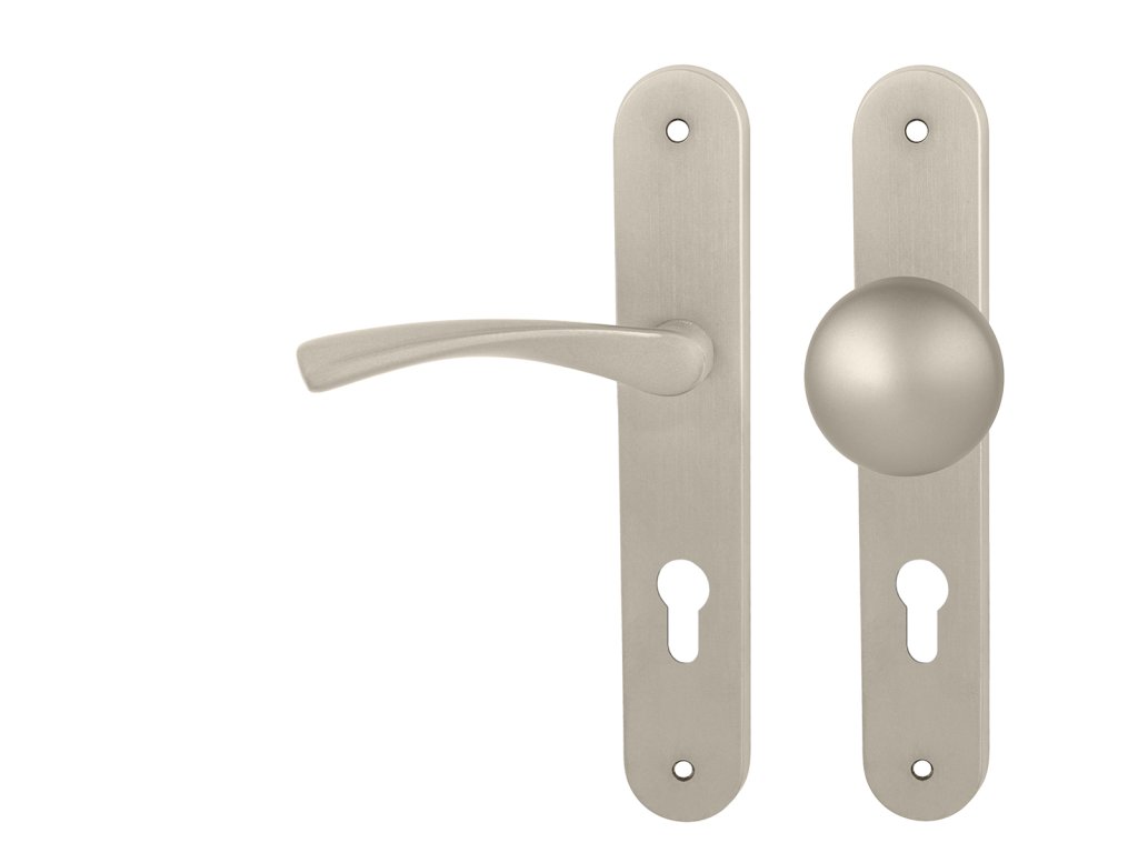 Štítová kľučka na interiérové dvere s oválnym štítom je vyrobená z materiálov vysokej kvality – mosadz/zamak a je povrchovo upravená.