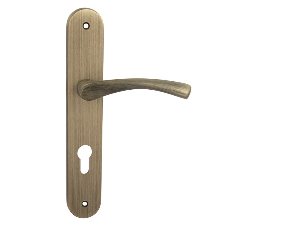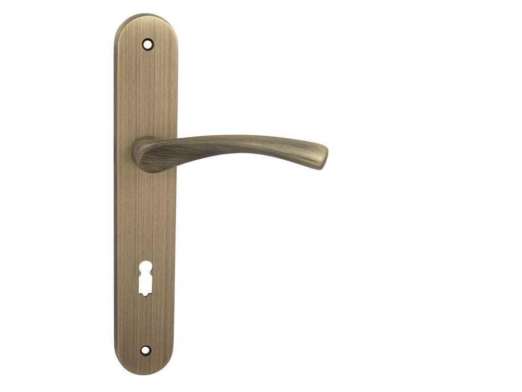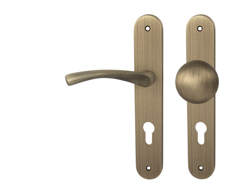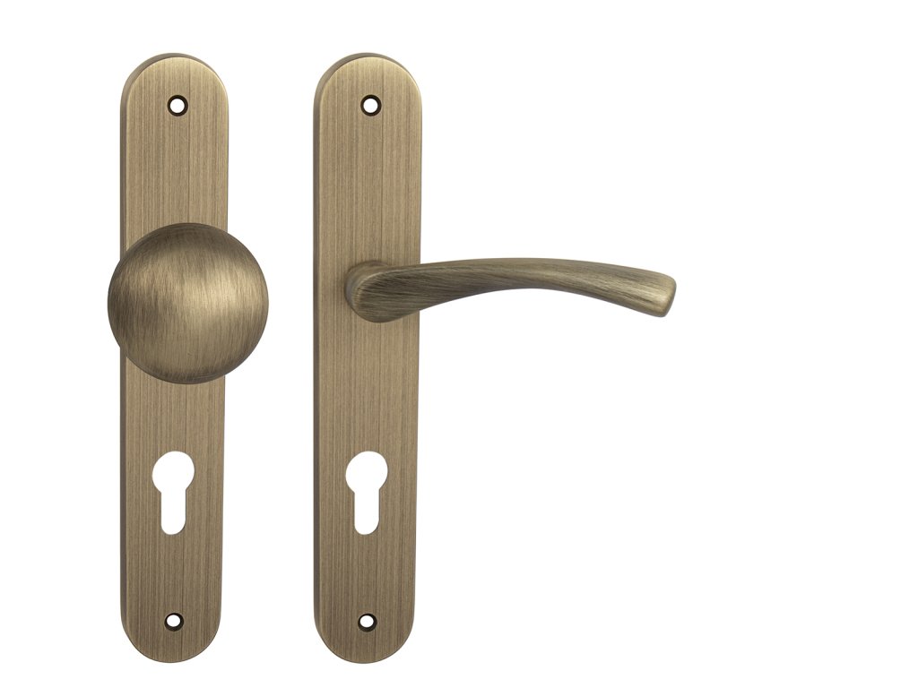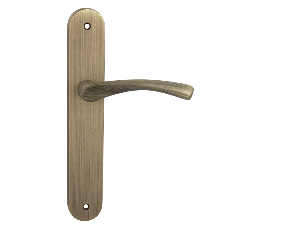 Štítová kľučka na interiérové dvere s oválnym štítom je vyrobená z materiálov vysokej kvality – mosadz/zamak a je povrchovo upravená.