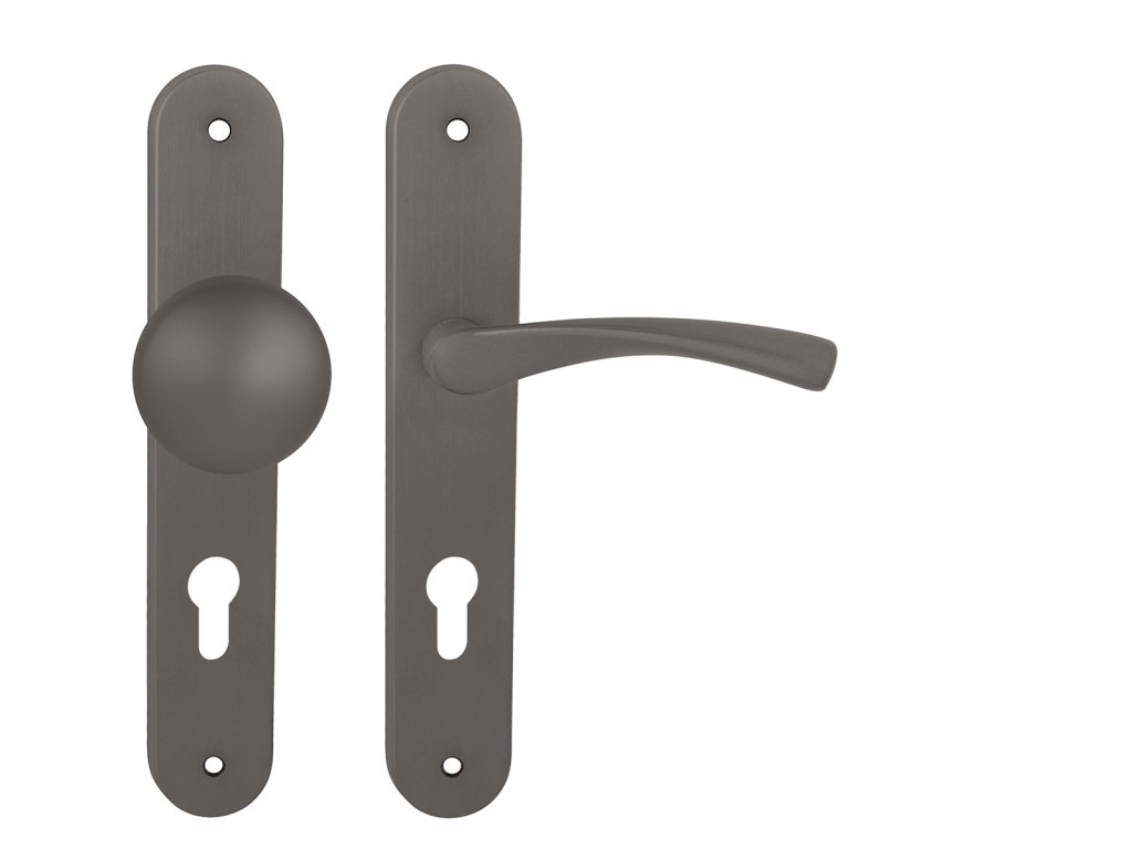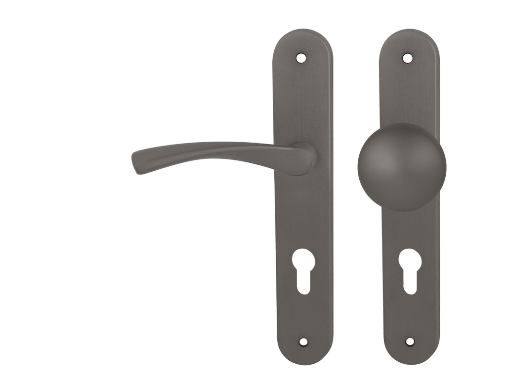 Štítová kľučka na interiérové dvere s oválnym štítom je vyrobená z materiálov vysokej kvality – mosadz/zamak a je povrchovo upravená.
