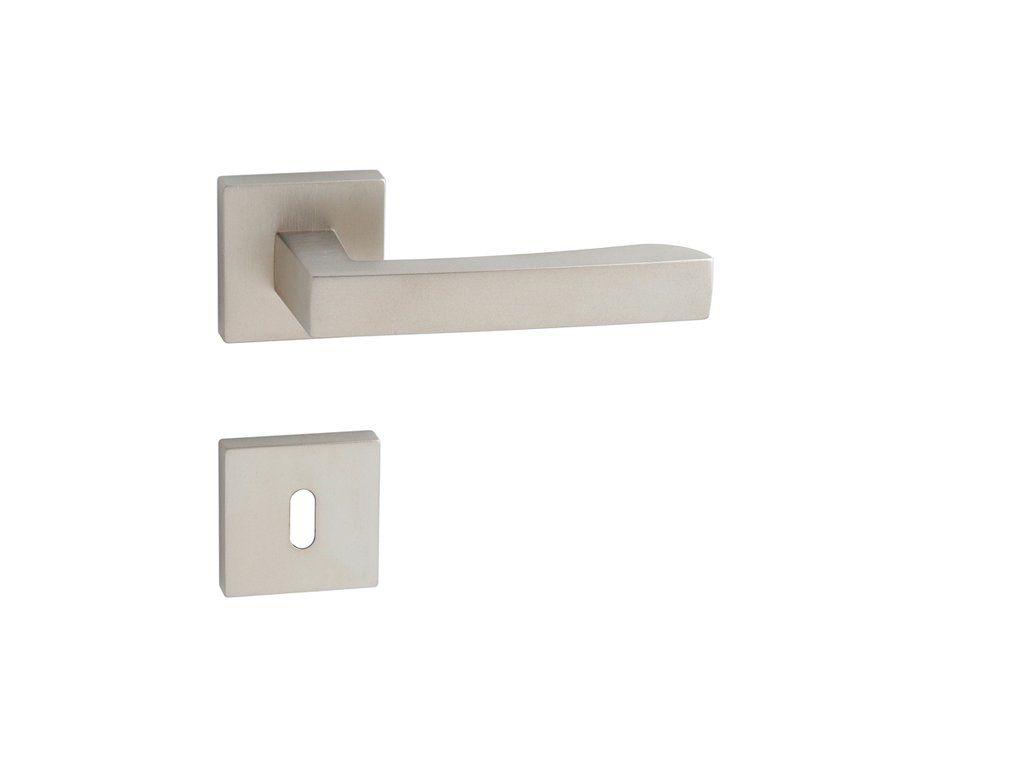 Rozetová kľučka na interiérové dvere s hranatou rozetou je vyrobená z materiálov vysokej kvality – zamak a je povrchovo upravená. Rozeta má rozmery 50 mm x 50 mm a hrúbku 10 mm.