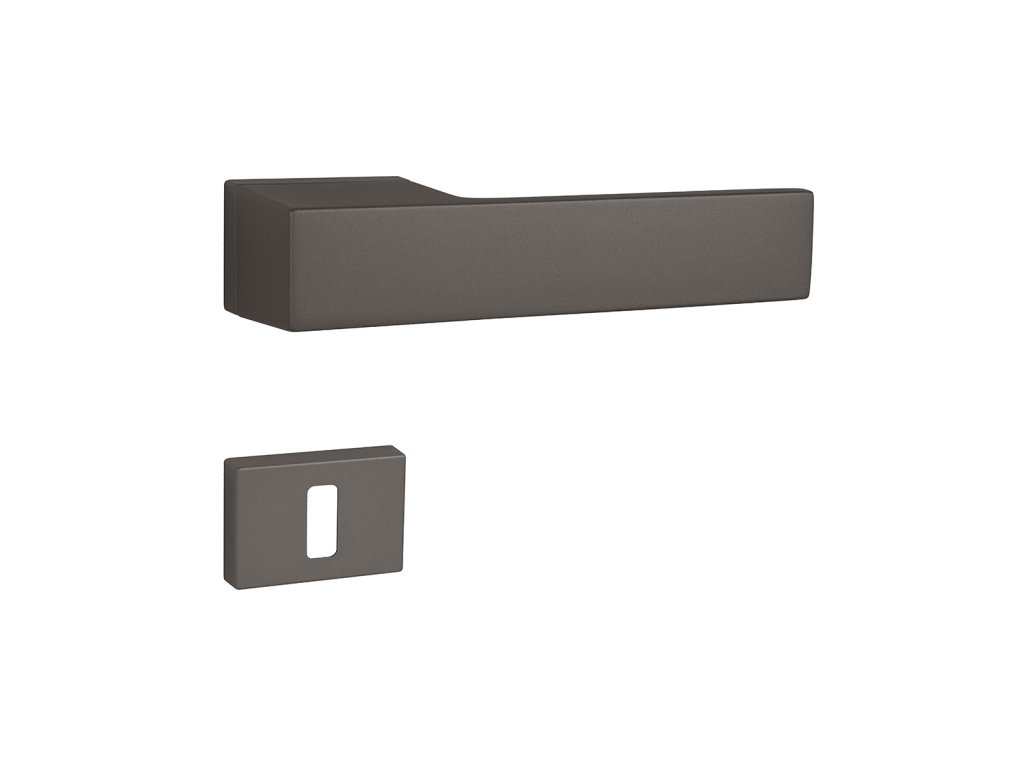 Rozetová kľučka ICON na interiérové dvere s obdĺžnikovou rozetou je vyrobená z materiálov vysokej kvality – zamak a je povrchovo upravená.
