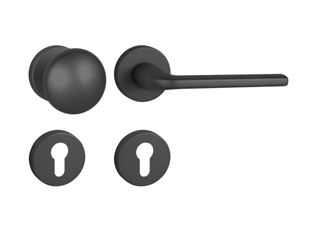 Rozetová kľučka na interiérové dvere s okrúhlou rozetou je vyrobená z materiálov vysokej kvality – zamak a je povrchovo upravená.