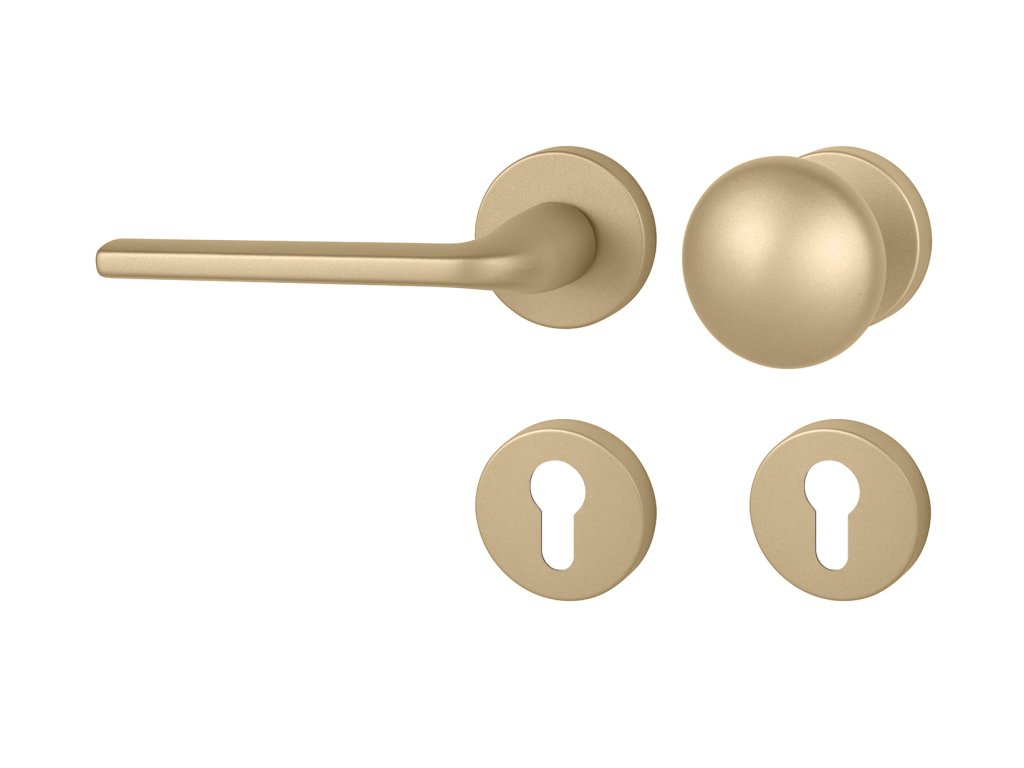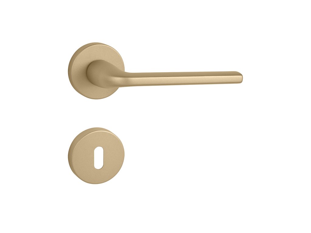 Rozetová kľučka na interiérové dvere s okrúhlou rozetou je vyrobená z materiálov vysokej kvality – zamak a je povrchovo upravená.