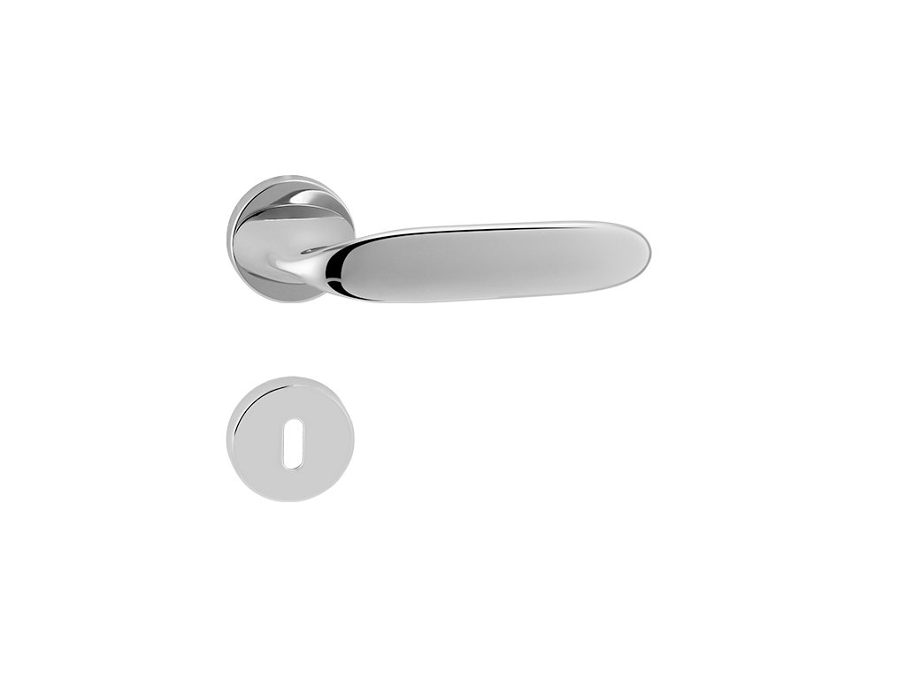 Rozetová kľučka na interiérové dvere s okrúhlou rozetou je vyrobená z materiálov vysokej kvality – zamak a je povrchovo upravená. Rozeta má priemer 50 mm a hrúbku 10 mm.