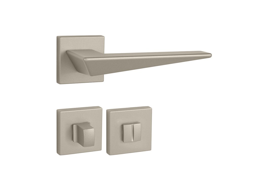 Rozetová kľučka na interiérové dvere s hranatou rozetou je vyrobená z materiálov vysokej kvality – zamak a je povrchovo upravená. Rozeta má rozmery 50 mm x 50 mm a hrúbku 10 mm.