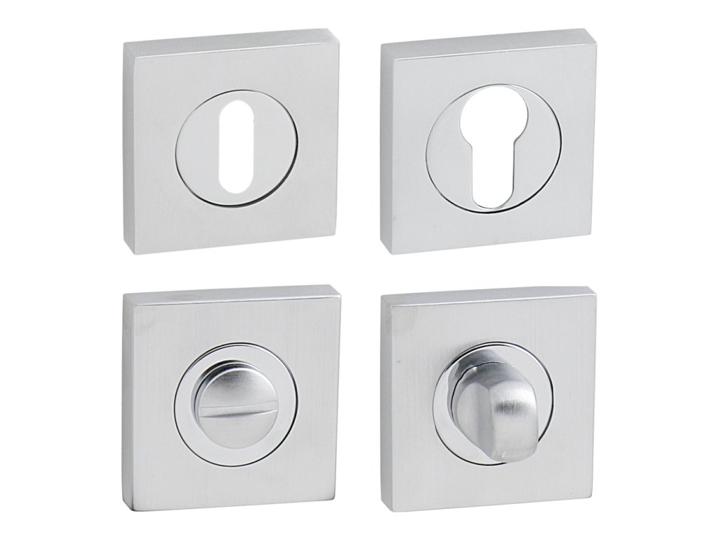 Hranatá rozeta je vyrobená z materiálov vysokej kvality - zamak a je povrchovo upravená. Rozeta má rozmery 51 mm x 51 mm a oválny otvor pre interiérový kľúč (BB), otvor cylindrickú vložku (PZ) alebo WC set s vmontovaným kľúčom. Balenie obsahuje 2 kusy roziet (pár) a rozety WC sú v balení ako set.