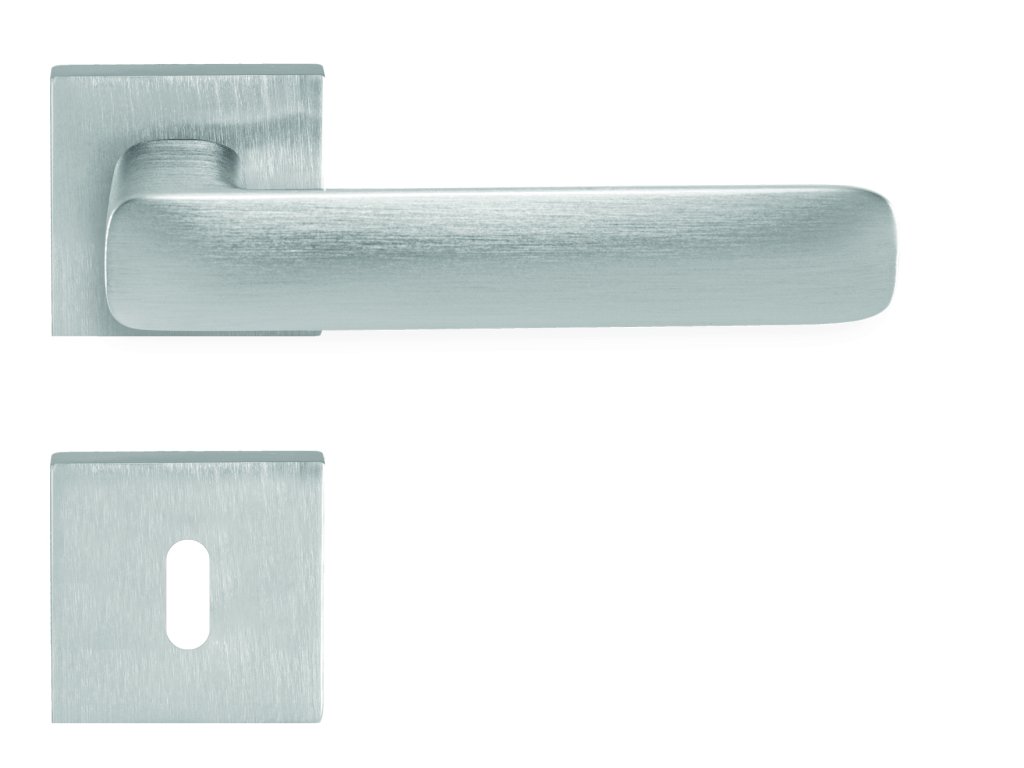 Rozetová kľučka na interiérové dvere s hranatou rozetou je z materiálov vysokej kvality – mosadz / zamak a je povrchovo upravená. Rozeta má štandardnú hrúbku 11 mm.