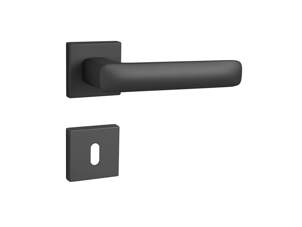 Rozetová kľučka SKY na interiérové dvere s hranatou rozetou je vyrobená z materiálov vysokej kvality – zamak a je povrchovo upravená.