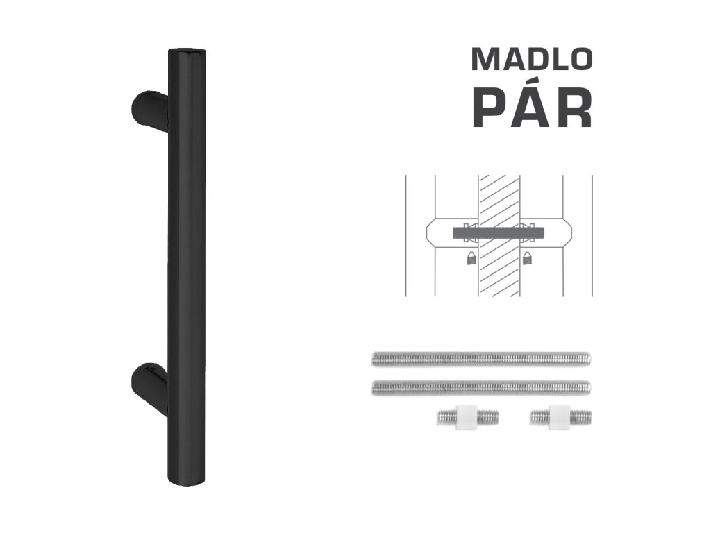 Madlo na dvere je vyrobené z vysokokvalitnej nehrdzavejúcej ocele, známej ako nerez a je povrchovo upravené. Profil madla je 25 mm. Sada UNIVERZÁL (UN) obsahuje spojovací materiál pre obojstrannú montáž dvoch madiel do dreva, PVC, AL, sklo. Madlo s dĺžkou 1600 mm má 3 úchyty.
