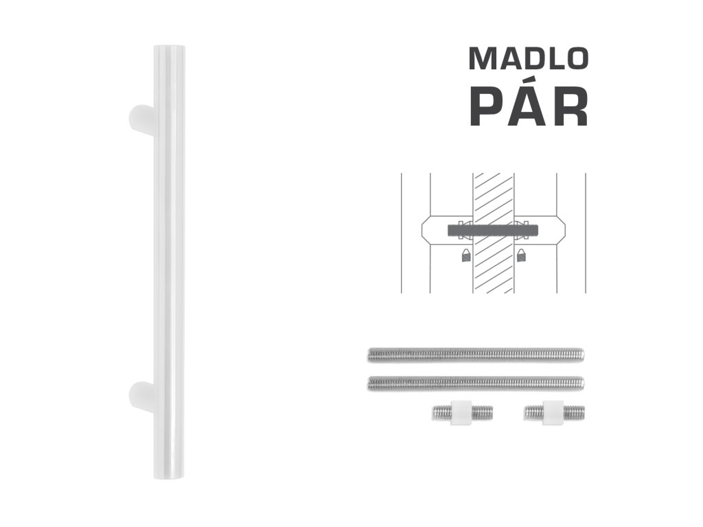 Madlo na dvere je vyrobené z vysokokvalitnej nehrdzavejúcej ocele, známej ako nerez a je povrchovo upravené. Profil madla je Ø 35 mm. Sada UNIVERZÁL (UN) obsahuje spojovací materiál pre obojstrannú montáž dvoch madiel do dreva, PVC, AL, sklo.