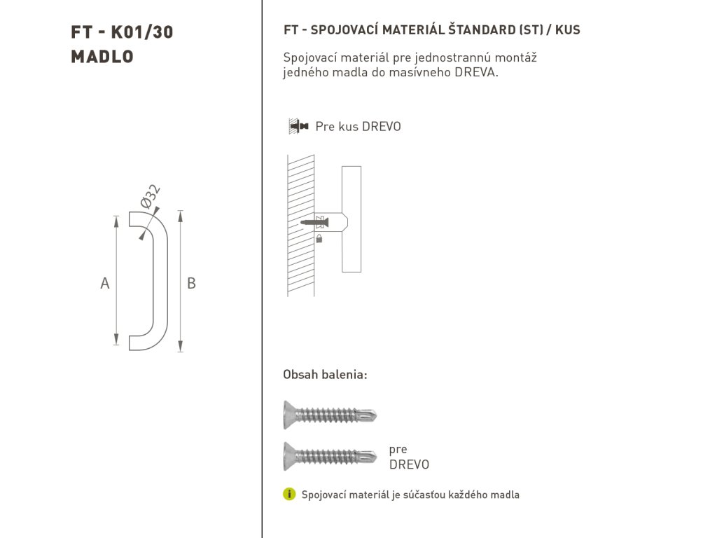 FT - MADLO kód K01 Ø 30 mm ST ks NEM - nerez matná (F60)