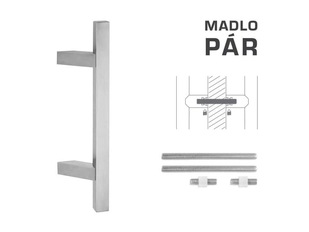 Madlo na dvere je vyrobené z vysokokvalitnej nehrdzavejúcej ocele, známej ako nerez a je povrchovo upravené. Profil madla je 25 x 25 mm. Sada UNIVERZÁL (UN) obsahuje spojovací materiál pre obojstrannú montáž dvoch madiel do dreva, PVC, AL, sklo.