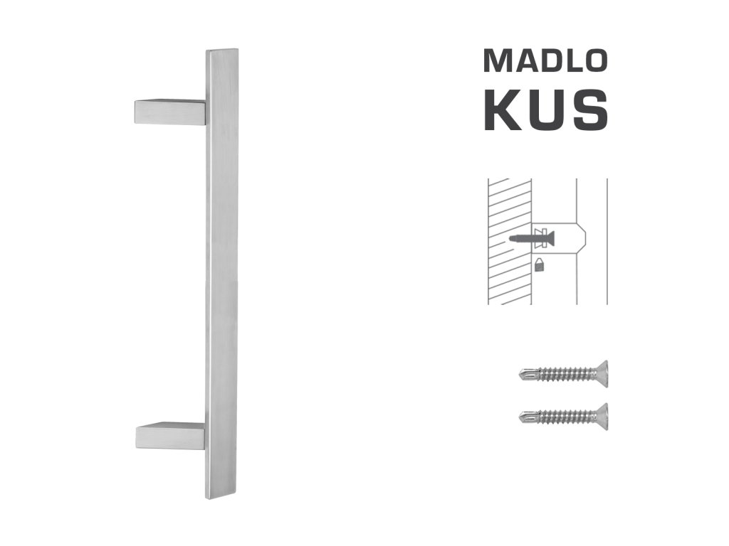Madlo na dvere je vyrobené z vysokokvalitnej nehrdzavejúcej ocele, známej ako nerez a je povrchovo upravené. Profil madla je 40 x 20 mm. Súčasťou madla sú vruty 6 x 45 mm. Madlo s dĺžkou 1800 má 3 nožičky.