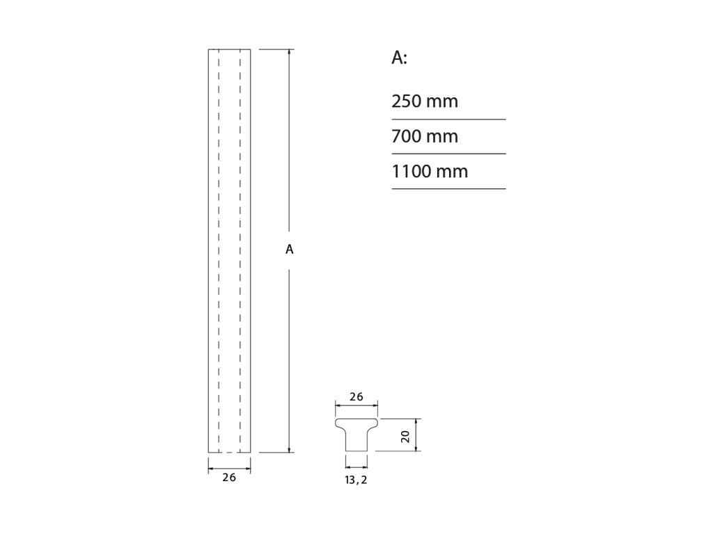 Dĺžka madla: 250 mm, 700, 1100 mm