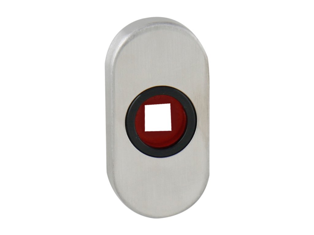 Oválna rozeta pod kľučku s BB otvorom pre dózický interiérový kľúč. Má rozmery 60 x 30 mm a je vhodná aj na úzke profily dverí.