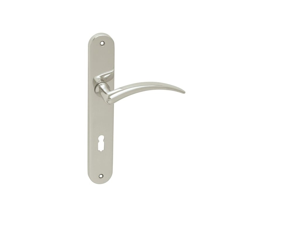 Štítová kľučka na interiérové dvere s oválnym štítom je vyrobená z hliníka a je povrchovo upravená. Kľučka obsahuje vratný mechanizmus.