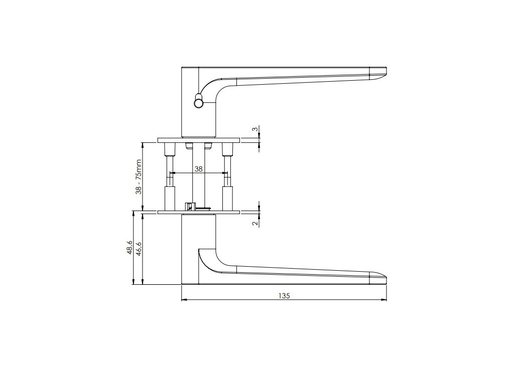 Mechanizmus kľučky obsahuje vratnú pružinu. Výstupky na rozete zabraňujú jej pretáčaniu a skrutky na preskrutkovanie cez celú šírku dverí zaručia pevnejšie a stabilnejšie uchytenie kovania.
