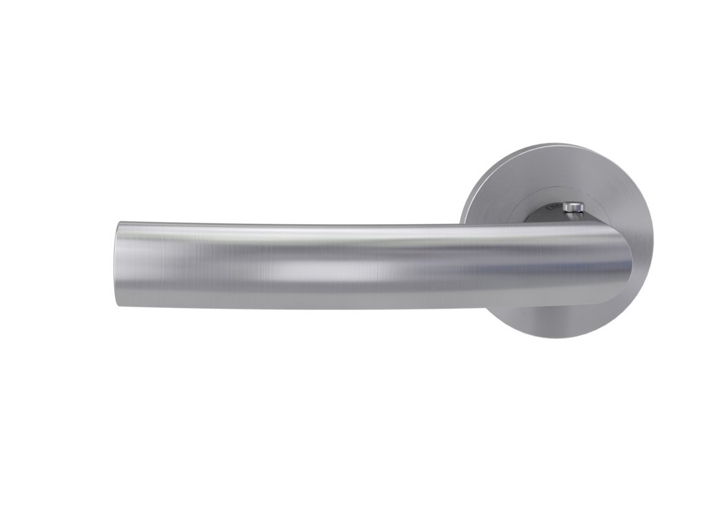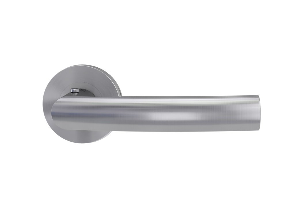 Rozetová kľučka na interiérové dvere s okrúhlou rozetou je vyrobená z vysokokvalitnej nehrdzavejúcej ocele, známej ako nerez a je povrchovo upravená. Rozeta má priemer 54 mm a hrúbku 8 mm.