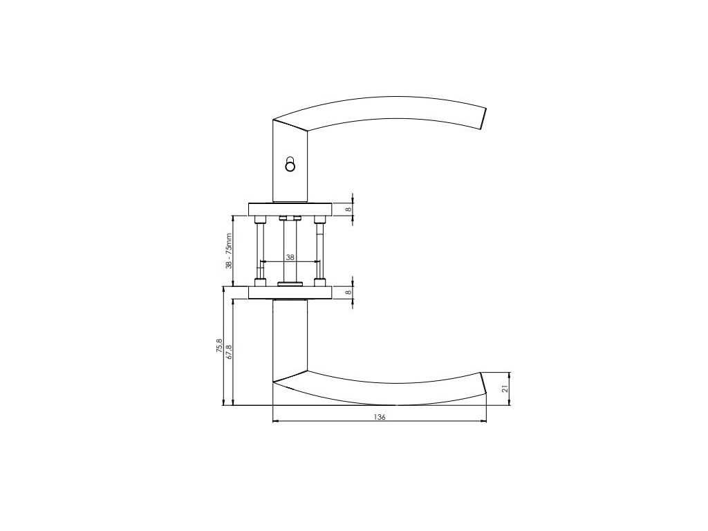 Štandardne je kovanie dodávané so skrutkami a štvorhranom (8x8 mm) pre hrúbku dverí od 38 do 45 mm.