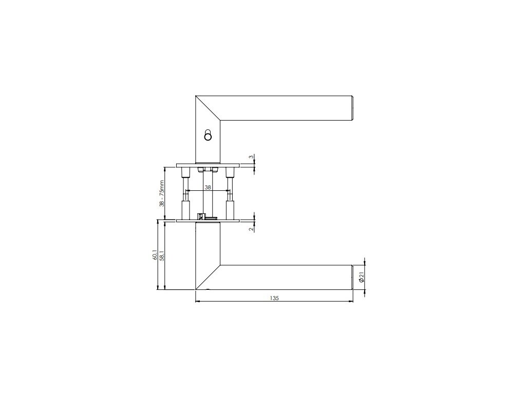 Mechanizmus kľučky obsahuje vratnú pružinu. Výstupky na rozete zabraňujú jej pretáčaniu a skrutky na preskrutkovanie cez celú šírku dverí zaručia pevnejšie a stabilnejšie uchytenie kovania.