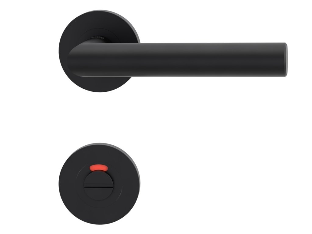 Mechanizmus kľučky obsahuje vratnú pružinu. Výstupky na rozete zabraňujú jej pretáčaniu a skrutky na preskrutkovanie cez celú šírku dverí zaručia pevnejšie a stabilnejšie uchytenie kovania.