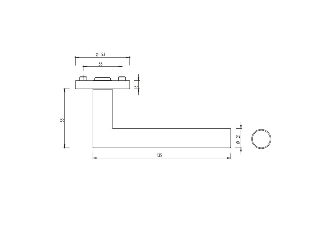 Štandardne je kovanie dodávané so skrutkami a štvorhranom (8x8 mm) pre hrúbku dverí 38 - 45 mm.