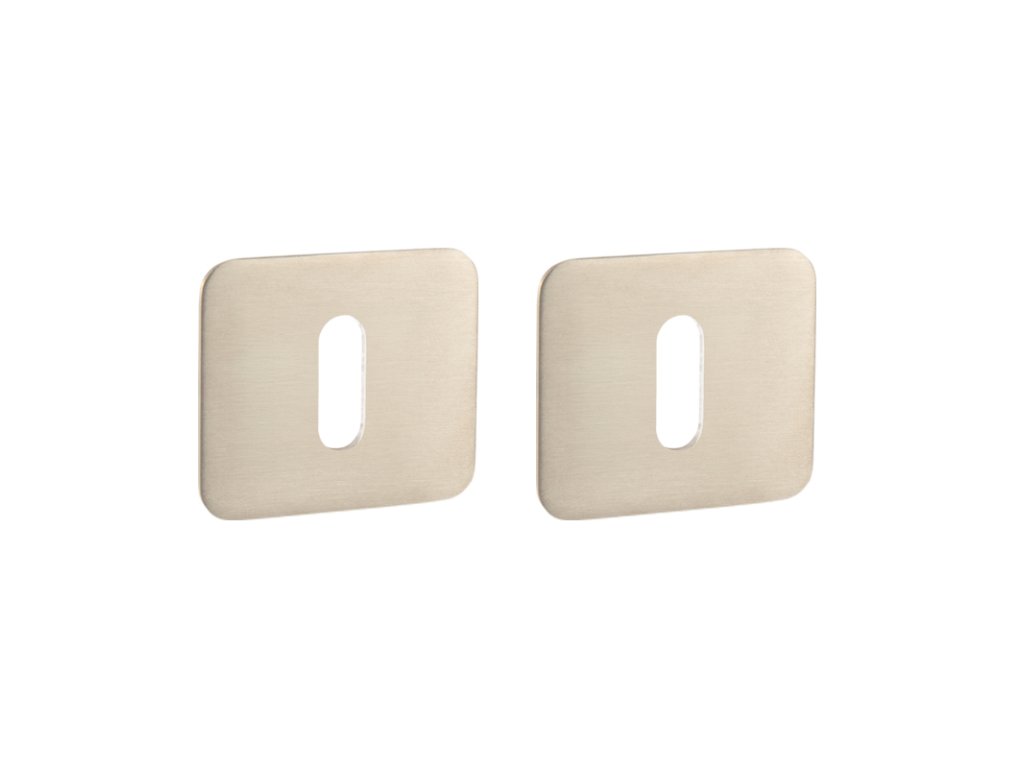 Rozeta má rozmery 48 mm x 44 mm, hrúbku 2 mm a oválny otvor pre interiérový kľúč (BB), otvor pre cylindrickú vložku (PZ) alebo WC set s vmontovaným kľúčom.