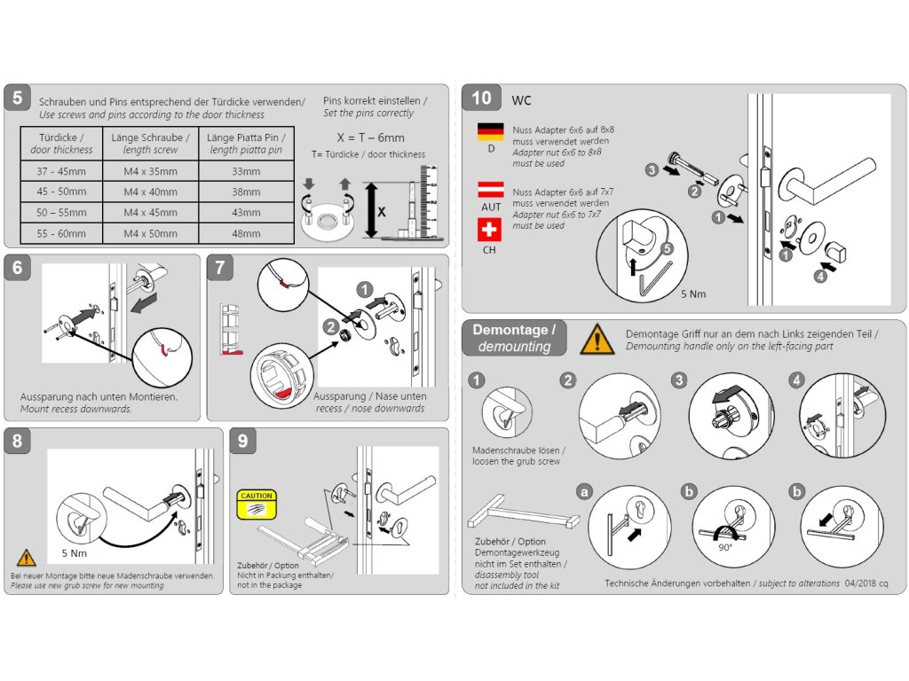 Štandardne je kovanie dodávané so skrutkami a štvorhranom (8x8 mm) pre hrúbku dverí 38 - 45 mm.