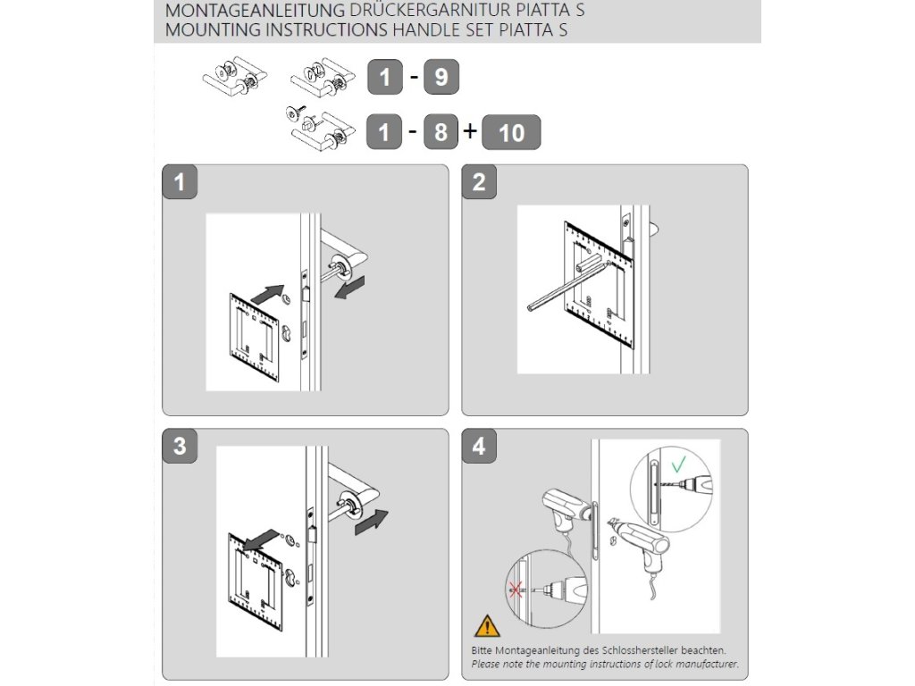 Mechanizmus kľučky obsahuje vratnú pružinu. Výstupky na rozete zabraňujú jej pretáčaniu a skrutky na preskrutkovanie cez celú šírku dverí zaručia pevnejšie a stabilnejšie uchytenie kovania.