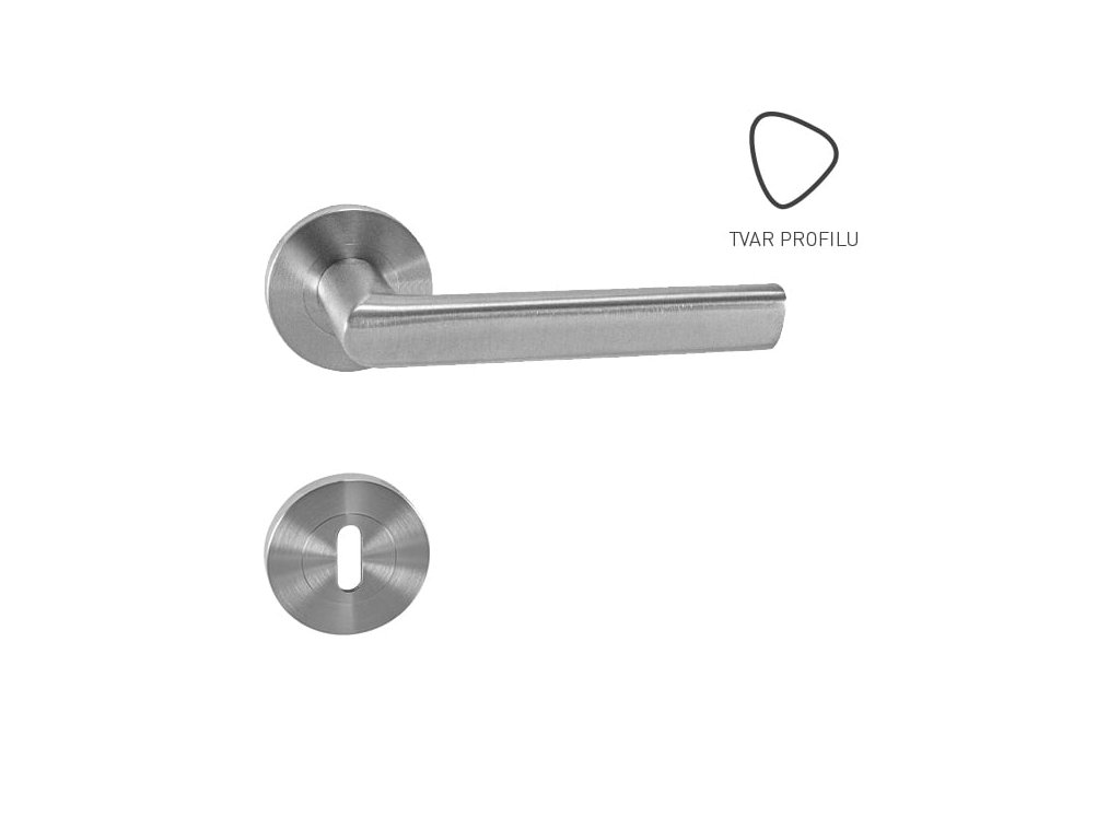 Rozetová kľučka na interiérové dvere s okrúhlou rozetou je vyrobená z vysokokvalitnej nehrdzavejúcej ocele, známej ako nerez a je povrchovo upravená. Rozeta má priemer 53 mm a hrúbku 8 mm.