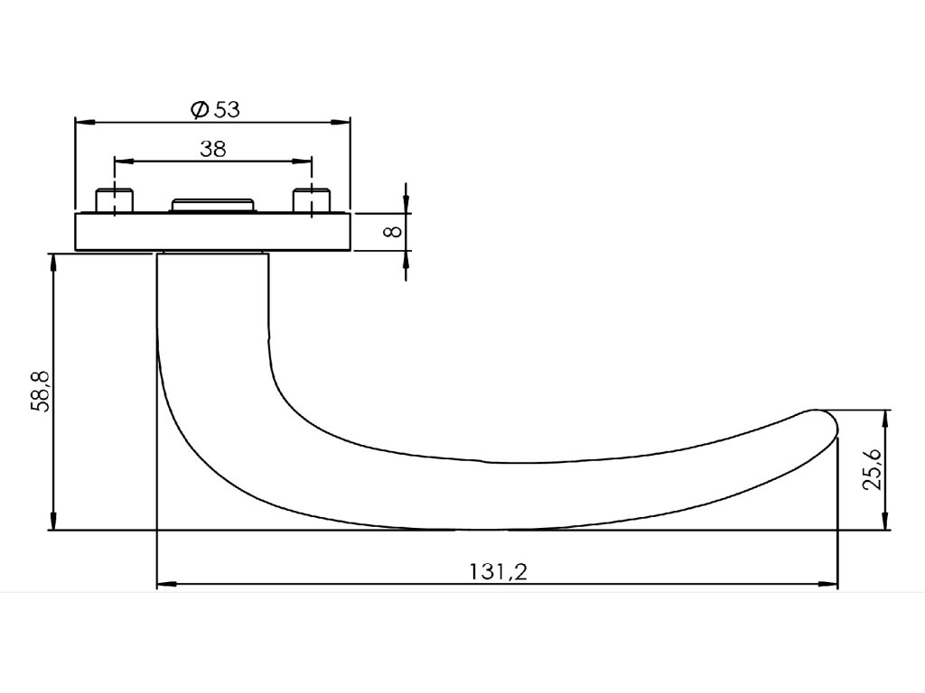 Štandardne je kovanie dodávané so skrutkami a štvorhranom (8x8 mm) pre hrúbku dverí 38 - 45 mm.