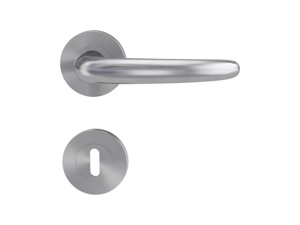 Rozetová kľučka na interiérové dvere s okrúhlou rozetou je vyrobená z vysokokvalitnej nehrdzavejúcej ocele, známej ako nerez a je povrchovo upravená. Kľučka je výnimočná svojím nadčasovým dizajnom a vysokou kvalitou. Mechanizmus kľučky obsahuje vratnú pružinu. Výstupky na rozete zabraňujú jej pretáčaniu a skrutky na preskrutkovanie cez celú šírku dverí zaručia pevnejšie a stabilnejšie uchytenie kovania.