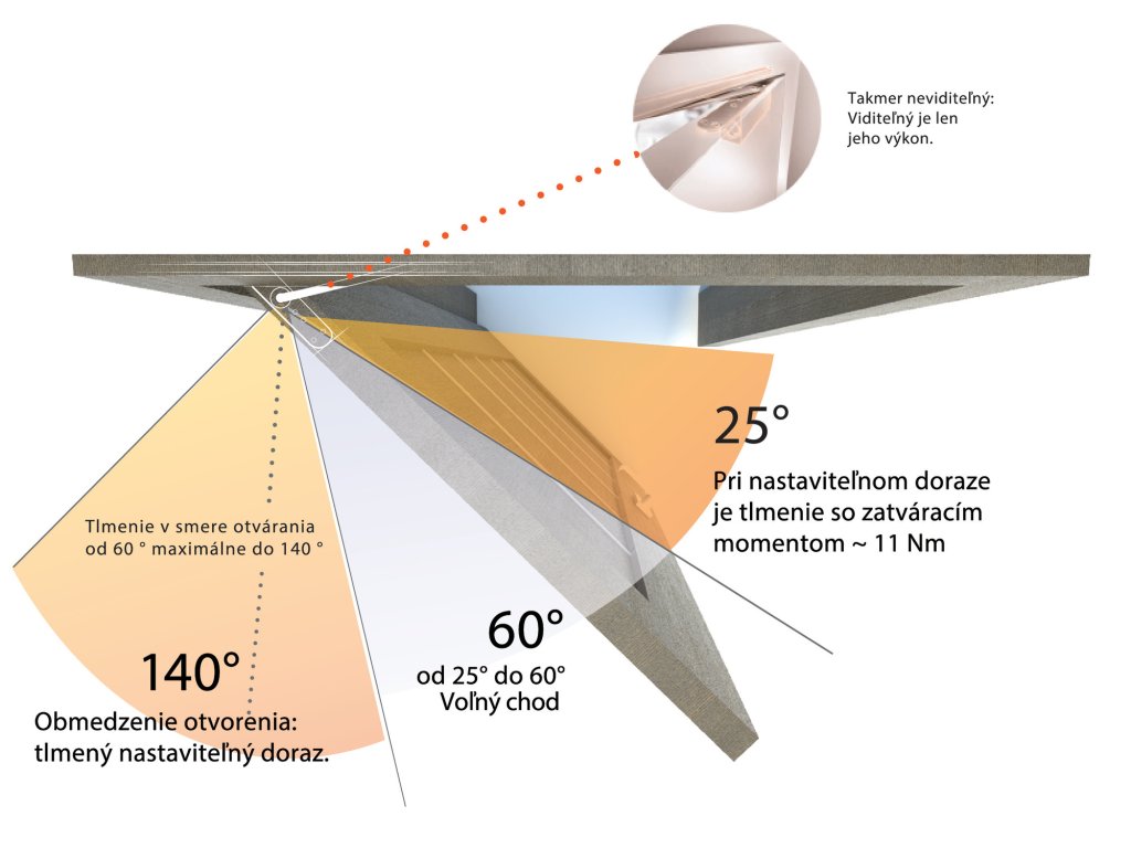 ActiveStop podrží dvere, aby sa nezatvorili. Už viac nebudete potrebovať dverné zarážky. Vďaka individuálne nastaviteľnému uhlu otvárania možno polohu zastavenia prispôsobiť vašim potrebám.