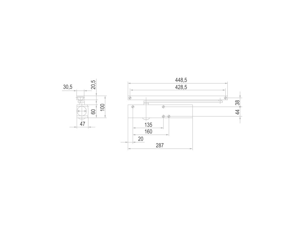 Doporučená váha dverného krídla podľa STN EN 1154 je pre tento samozatvárač 100 kg.