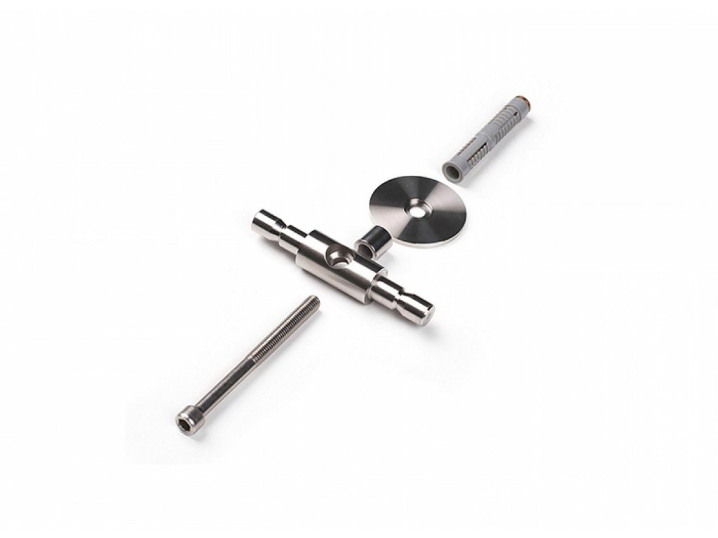 Držiak na stenu so spojkou IN.15.130 je vyrobený z kvalitnej nehrdzavejúcej ocele s povrchovou úpravou. Držiak je určený pre koľajnicu na posuvné dvere s priemerom 20 mm.