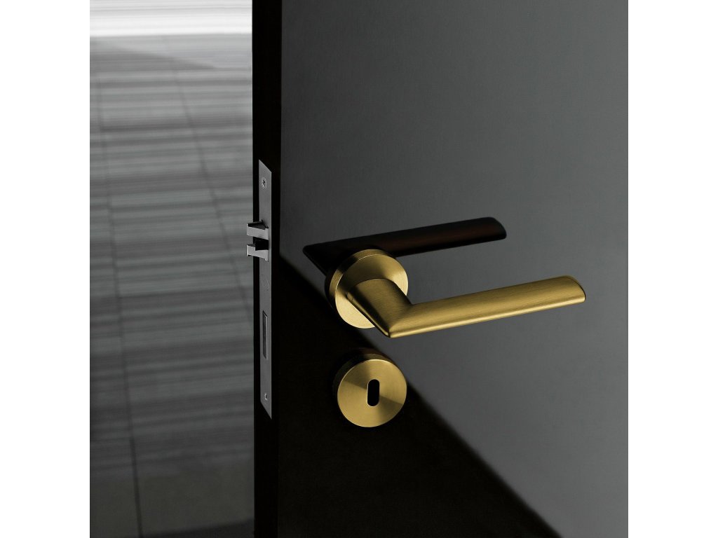 Kľučka obsahuje vratný mechanizmus a kovová rozeta s výstupkami zabraňuje nežiadanému pohybu rozety na dverách.