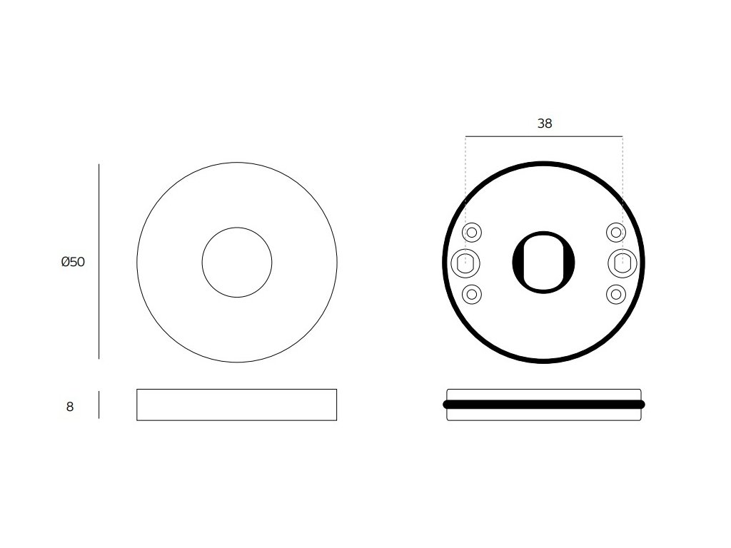 Rozetová kľučka na interiérové dvere s okrúhlou rozetou je vyrobená z vysokokvalitnej nehrdzavejúcej ocele, známej ako nerez a je povrchovo upravená. Rozeta má priemer 50 mm a hrúbku 8 mm.