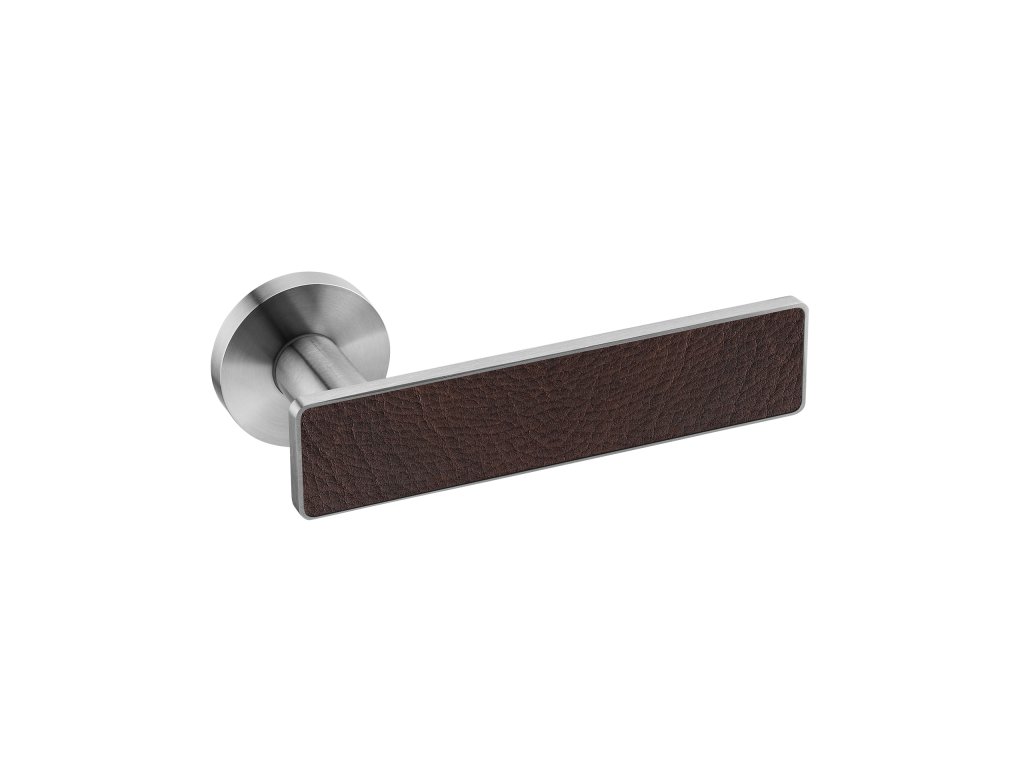 Originálna kľučka FRAME CONTOUR 436 je vyrobená z vysokokvalitnej nehrdzavejúcej ocele s povrchovou úpravou. Špeciálny efekt vytvára prírodná koža, ktorá zdobí rukoväť kľučky. Je príjemná na dotyk a pôsobivo dotvára každý interiér.