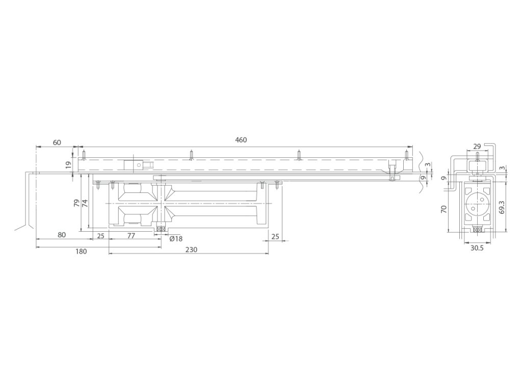 Doporučená váha dverného krídla podľa STN EN 1154je pre tento samozatvárač 60 kg.