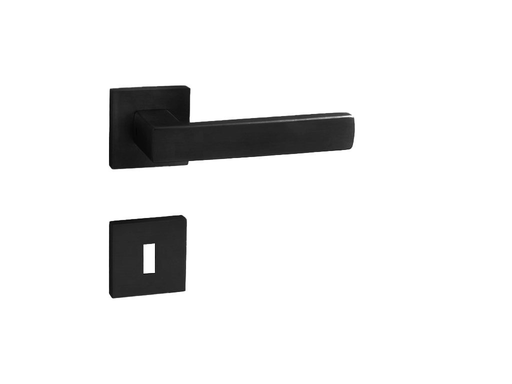 Rozetová kľučka na interiérové dvere s hranatou rozetou je vyrobená z vysokokvalitnej nehrdzavejúcej ocele, známej ako nerez a je povrchovo upravená. Kovová krytka rozety je ukotvená skrutkou na kovovú mechaniku. Rozeta má rozmer 50 x 50 mm a štandardnú hrúbku 8 mm.