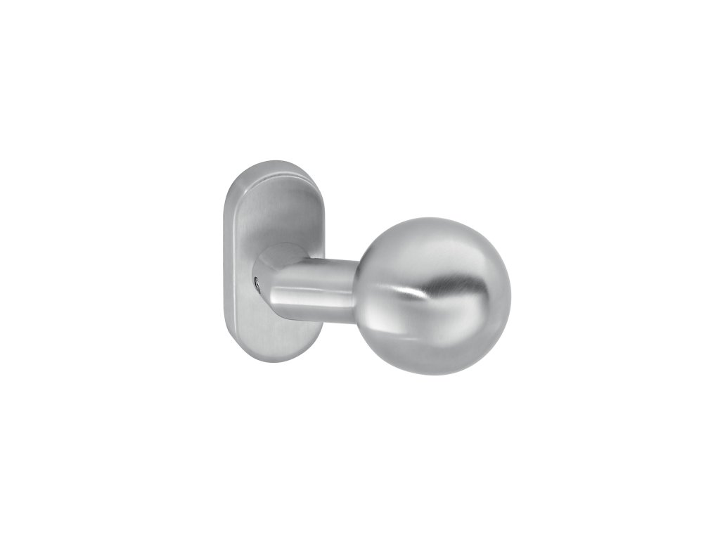 Dverová vyosená guľa na úzkej oválnej rozete je vyrobená z vysokokvalitnej nehrdzavejúcej ocele, známej ako nerez a je povrchovo upravená. Guľa pre dvere s úzkym profilom má priemer 50 mm.