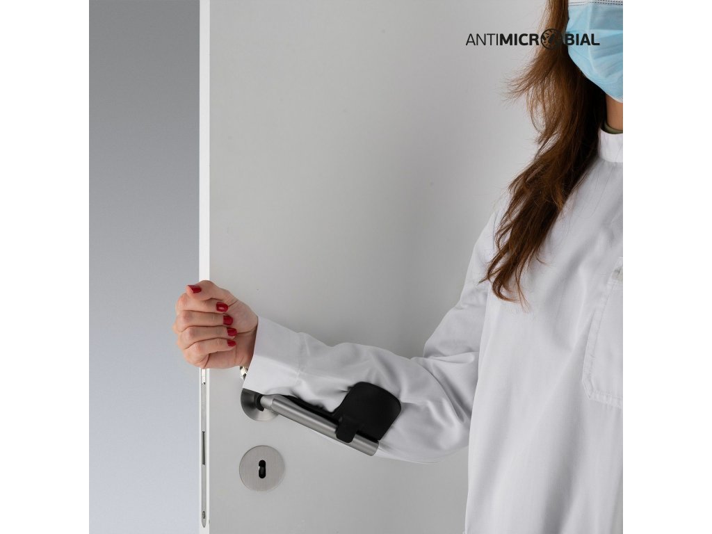 Hands-free systém otvárania dverí je kompatibilný s kľučkami značky JNF IN.00.028, IN.00.028.B and IN.00.030. Hands free otvárač je vyrobený z hygienického antimikrobiálneho polyméru.