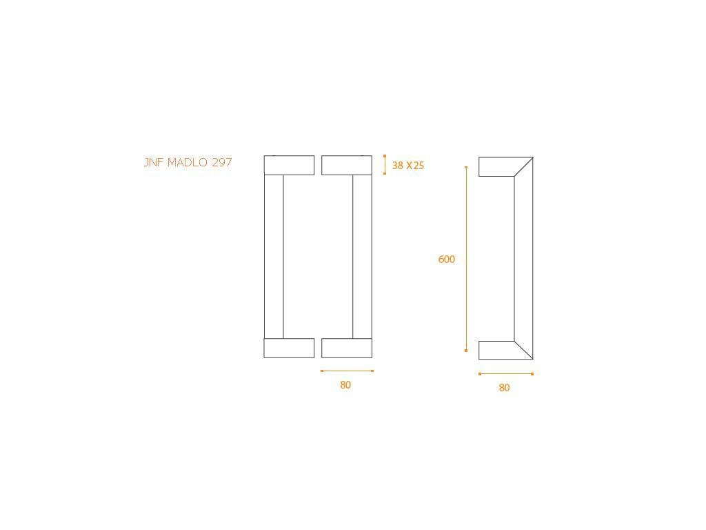 Madlo na dvere je vyrobené z vysokokvalitnej nehrdzavejúcej ocele, známej ako nerez a je povrchovo upravené. Profil madla 38 mm x 25 mm, rozteč skrutiek 600 mm, hĺbka madla 80 mm.